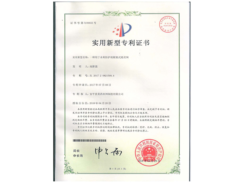 云南省宏州蘿卜壩河用鉛絲石籠榮獲“省優(yōu)產品”,“ 政府質量獎”等眾多殊榮